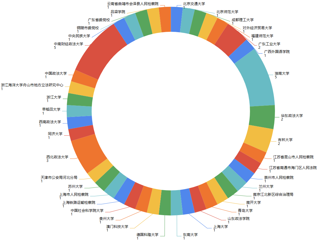 本次研讨会以财产犯罪为主题,诚邀青年学者、实务工作者和广大在校生投稿。自“社科大法学院”公众号发布征文通知以来,受到“青苗法鸣”“法研在线”等多个公众号转载宣传,各平台征稿相关推介内容总阅读量超过10000次。截至征稿结束,研讨会收到来自中国政法大学、中国社会科学院大学、北京师范大学、浙江大学、南开大学、澳门科技大学等41所高校、研究机构和实务单位的来稿共计45篇,其中有效稿件44篇。其中,投稿数量位于前六的单位分别为湖南大学、中南财经政法大学、西北政法大学、吉林大学、华东政法大学、广东工业大学。约81%的稿件来源为学者及高校学子,约11%的稿件来源为检察系统,约8%的稿件来源为党校、政府机构和法院系统。研讨会还收到了2篇外国高校联合培养博士生、硕士生的稿件。