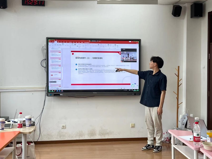 2025年9月15日,中国社会科学院大学“研创计划”学术报告会(2025-KYS-013)在良乡校区309教研室成功举办。法学院2023级法律硕士研究生李政豪以“背信损害上市公司利益罪探究”为主题进行报告。中国社会科学院法学研究所张志钢副研究员、中国社会科学院大学法学院方军副教授,以及法学院部分硕士研究生参与了本次报告会。