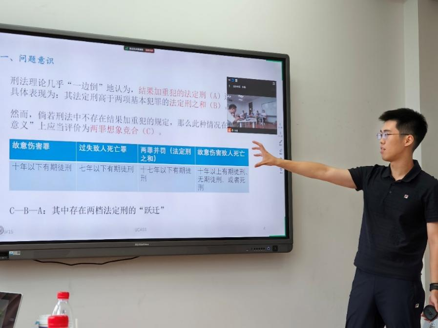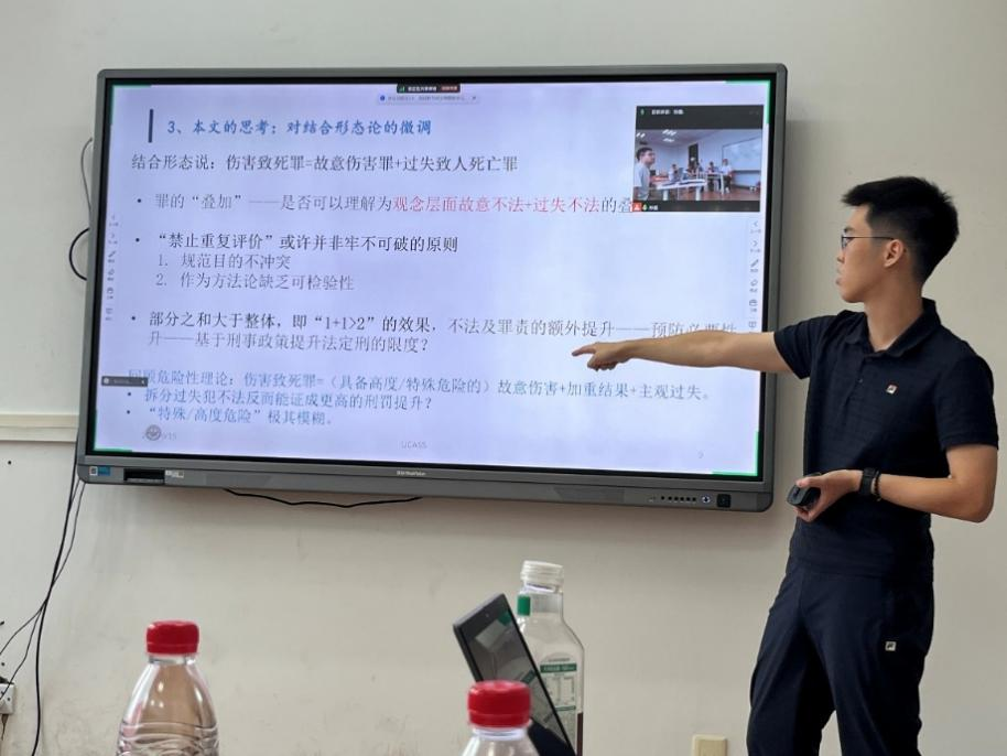2025年9月16日,由23级刑法学硕士研究生孙嘉主持并主讲的,关于“结果加重犯的归责构造研究”的研创计划(项目编号:2025-KYY-114)结项报告会在教学楼309举行,法学院张志钢副教授、方军副教授莅临指导,现场同学进行了提问交流。
