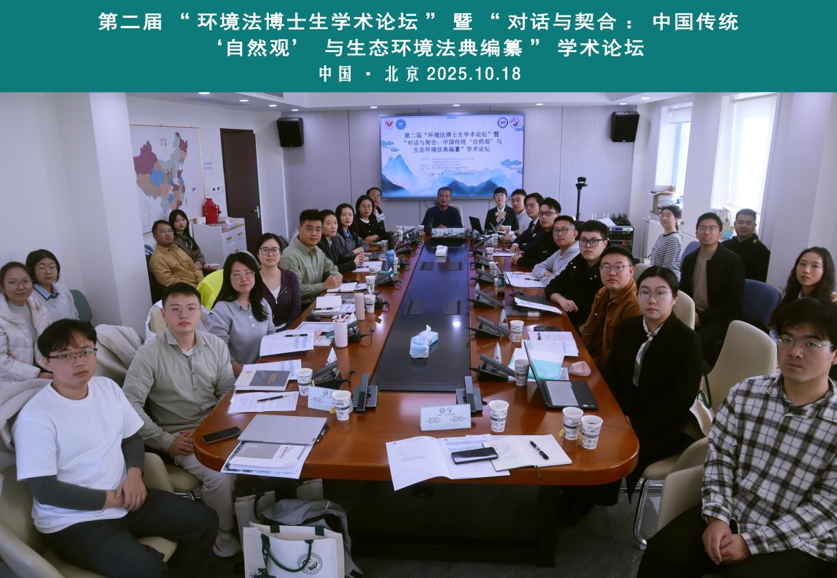 2025年10月18日,由中国社会科学院大学法学院、中国社会科学院法学研究所生态法研究室主办,第二届环境法博士生学术论坛组委会承办的中国社会科学院大学“第二届环境法博士生学术论坛”暨“对话与契合:中国传统‘自然观’与生态环境法典编纂”(中国社会科学院大学研创计划学术研讨会培育项目:2025-XL-015)在京成功举办。来自中国社会科学院大学、中国海洋大学、厦门大学、山西大学、北京林业大学、中南财经政法大学、中国政法大学、北京理工大学、南京大学、西南政法大学、武汉大学、辽宁大学、内蒙古大学等多所学校的老师和同学参加了本届论坛。
