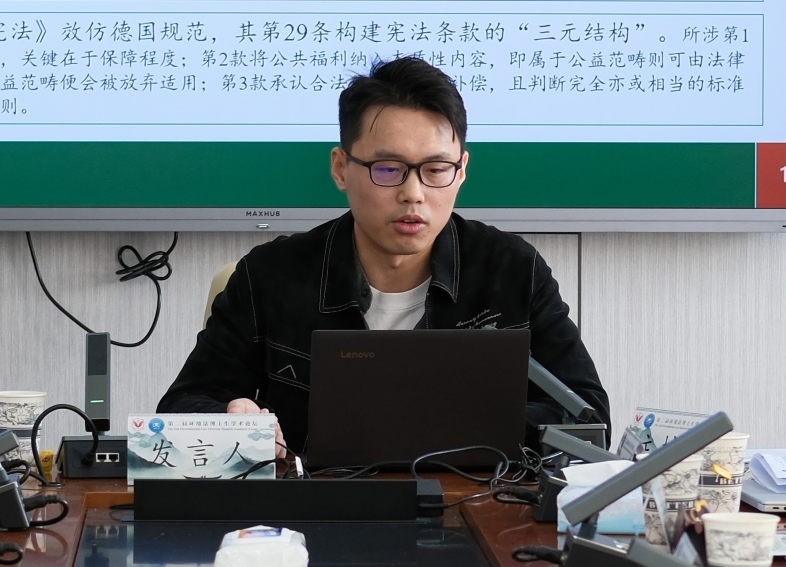 由山西大学法学院张小康同学、中国政法大学民商经济法学院冯瀚元同学、北京理工大学法学院赵新同学、南京大学法学院李东洋同学、西南政法大学民商法学院郑毓翰同学进行发言。武汉大学法学院刘斯羽同学、辽宁大学法学院尹详瑞同学进行与谈。