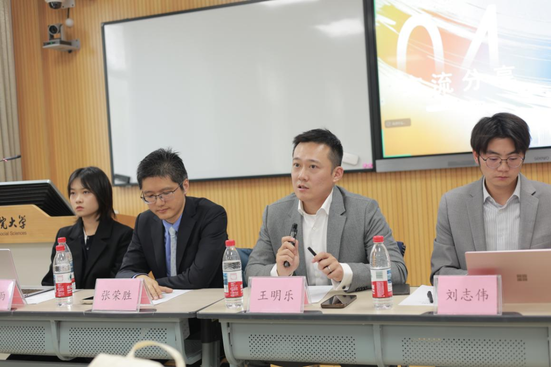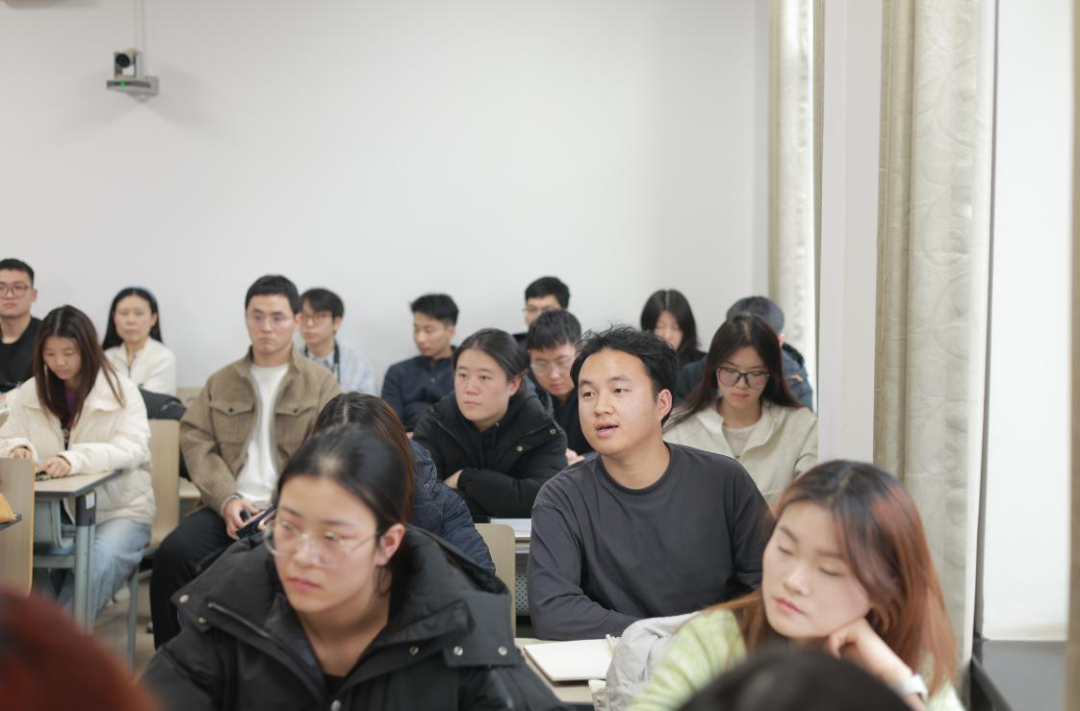 随后,合伙人王明乐律师,以及社科大校友、竞天公诚青年律师刘志伟、马冬雨,依次结合自身执业经历,与同学们畅谈法律职业的体会与感悟。谈及律师行业的时间管理时,几位律师均强调了“自律”与“平衡”的重要性。无论是坚持清晨健身以保持良好状态,还是灵活规划工作节奏、在远程办公中建立生活秩序,他们都分享了各自在工作与生活间找到适配节奏的经验。律师们表示,律师行业虽忙碌,但仍有个人生活的调配空间,关键在于找到适合自己的可持续的节奏。