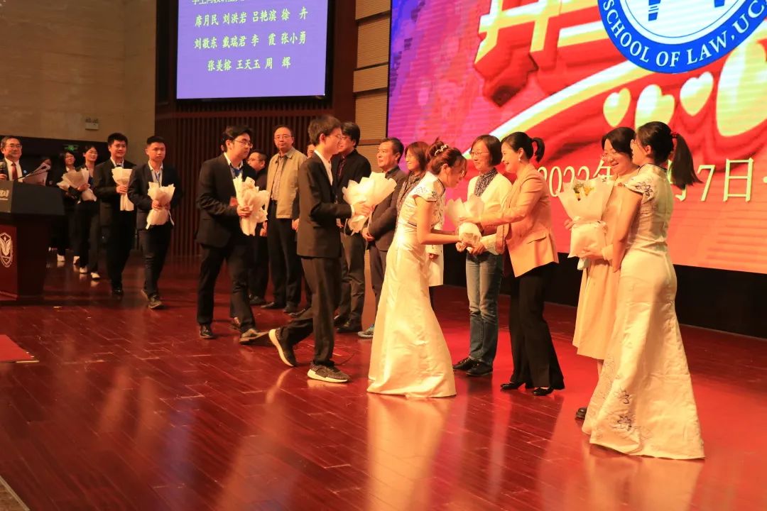 师生见面会步入尾声,在《红旗颂》的钢琴声中,同学们向教研室负责人和导师代表席月民教授、刘洪岩教授、吕艳滨教授、徐卉教授、刘敬东教授、戴瑞君教授、李霞副教授、王天玉副教授、张美榕副教授和周辉副教授献花;同学们向班主任和辅导员程捷副教授、韩伟副教授、蔡睿博士、李广德博士、刘灿华博士、于宜平老师和刘瑗珂老师献花,同学们向特聘教授陈甦教授和田禾教授献花。