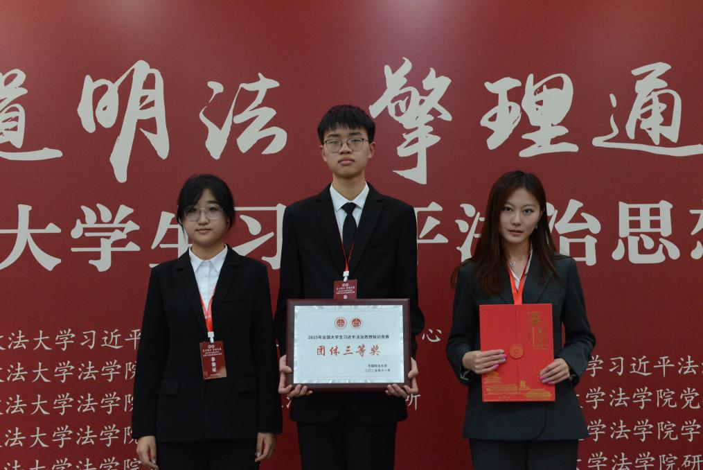 通过此次比赛,队员们深刻认识到习近平法治思想从不是停留在文本中的“抽象理论”,而是渗透在每一次司法实践、每一项制度设计里的“活的思想”,是“中国之治”的法治密码。这次宝贵的经历让队员们的习近平法治思想的基础知识得到了进一步巩固,学术视野也得到了进一步提升,同时充分体现了我校在学术竞赛中的良好风貌。我院及我院代表队队员会继续重视习近平法治思想的学习以及抢答等各方面能力的锻炼,队员们将以本次参赛经验为养分,持续学习、不断进步,力争来年再创佳绩!