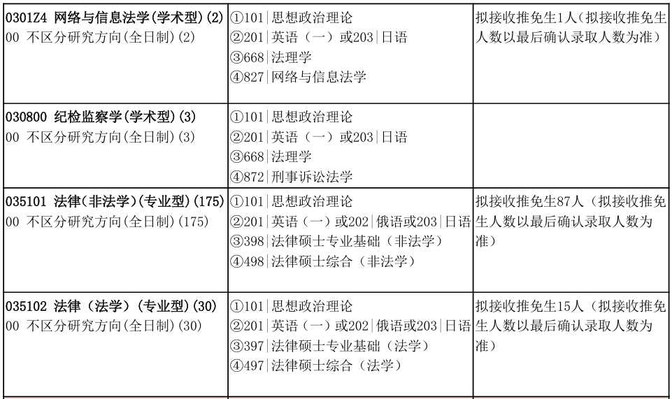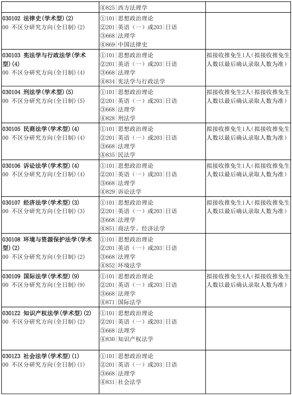 招生 | 社科大2026年硕士研究生招生专业目录(法学院)