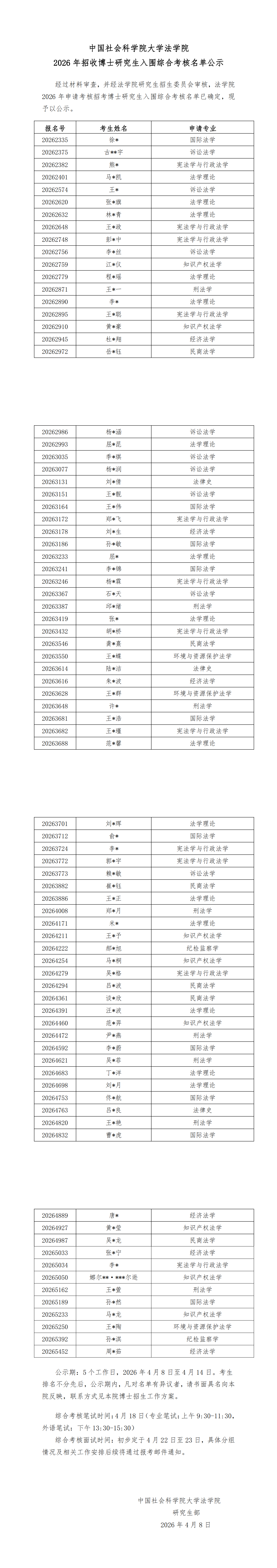 法学院2026年招收博士研究生入围综合考核名单公示