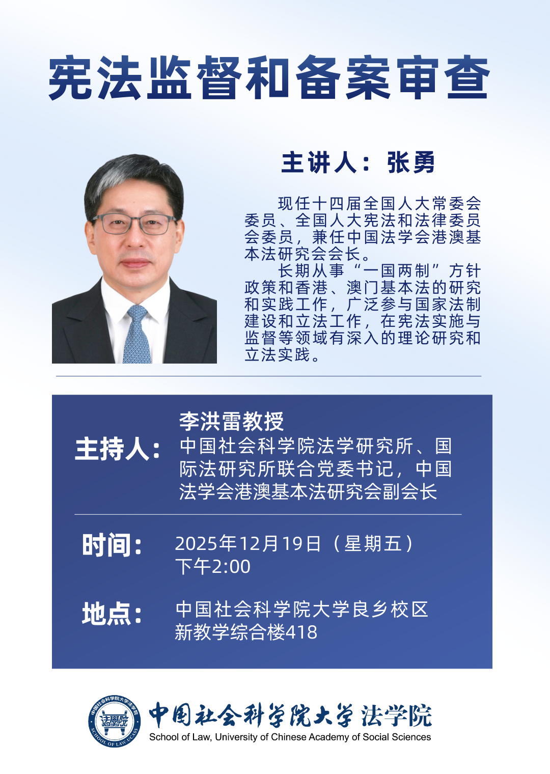 讲座预告 | 张勇:宪法监督和备案审查