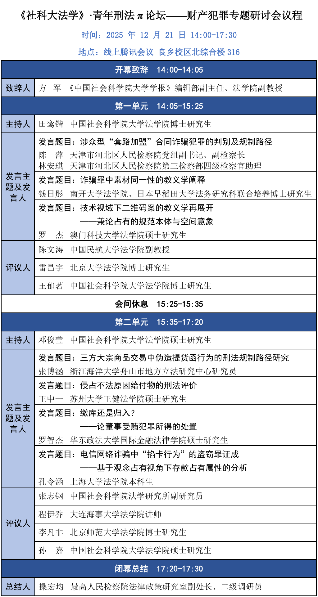 《社科大法学》·青年刑法π论坛——财产犯罪专题研讨会会议预告